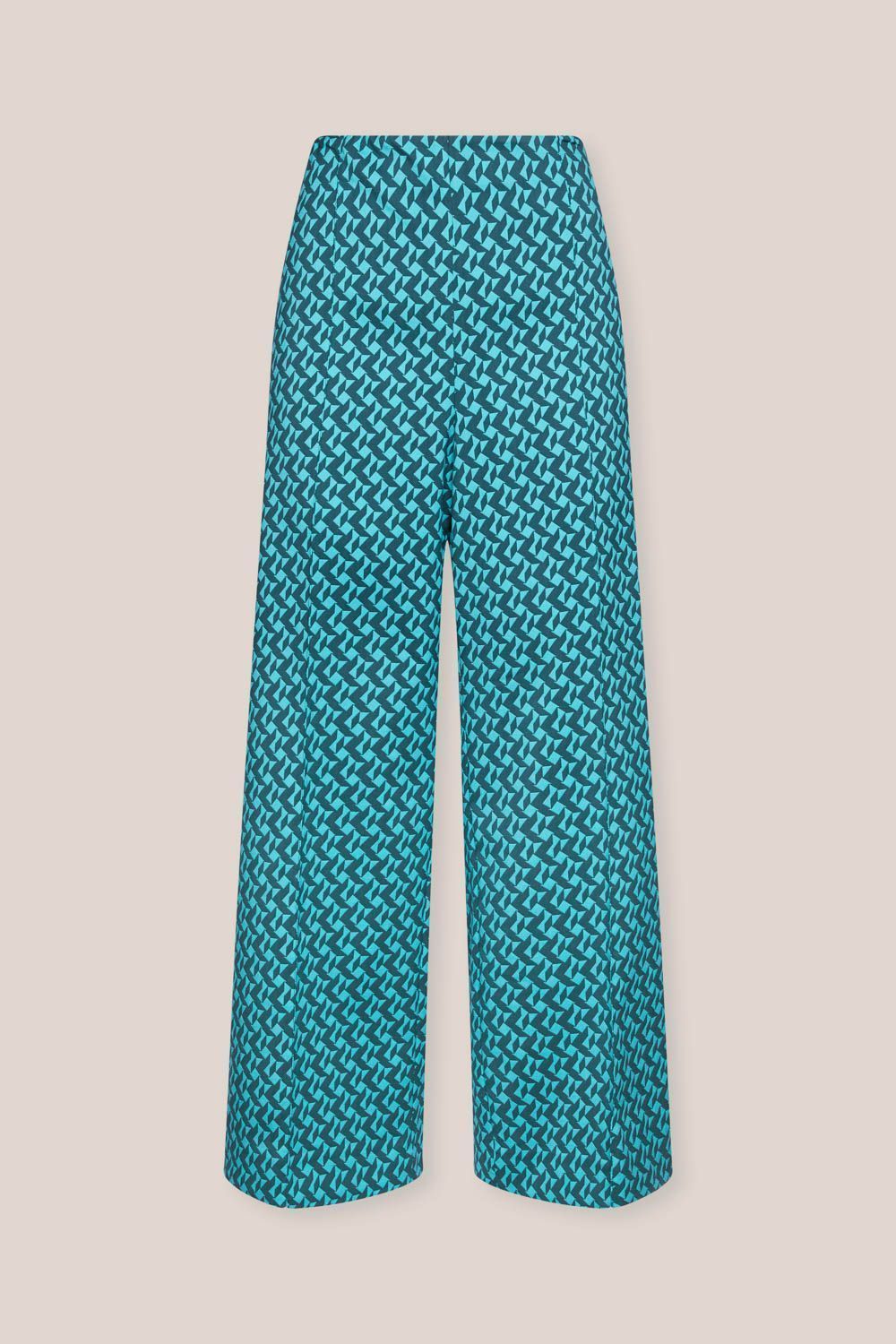 Прямые укороченные брюки с изысканным геометрическим дизайном из жаккарда. Эластичный пояс и боковая застежка-молния обеспечивают удобную посадку по фигуре. Идеально сочетается с блузкой.