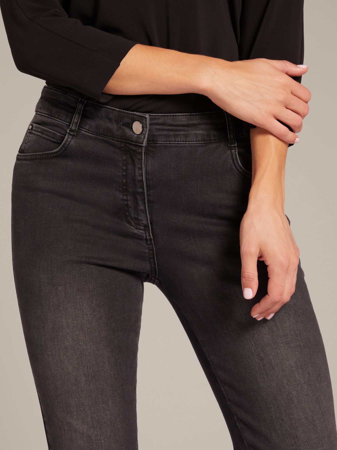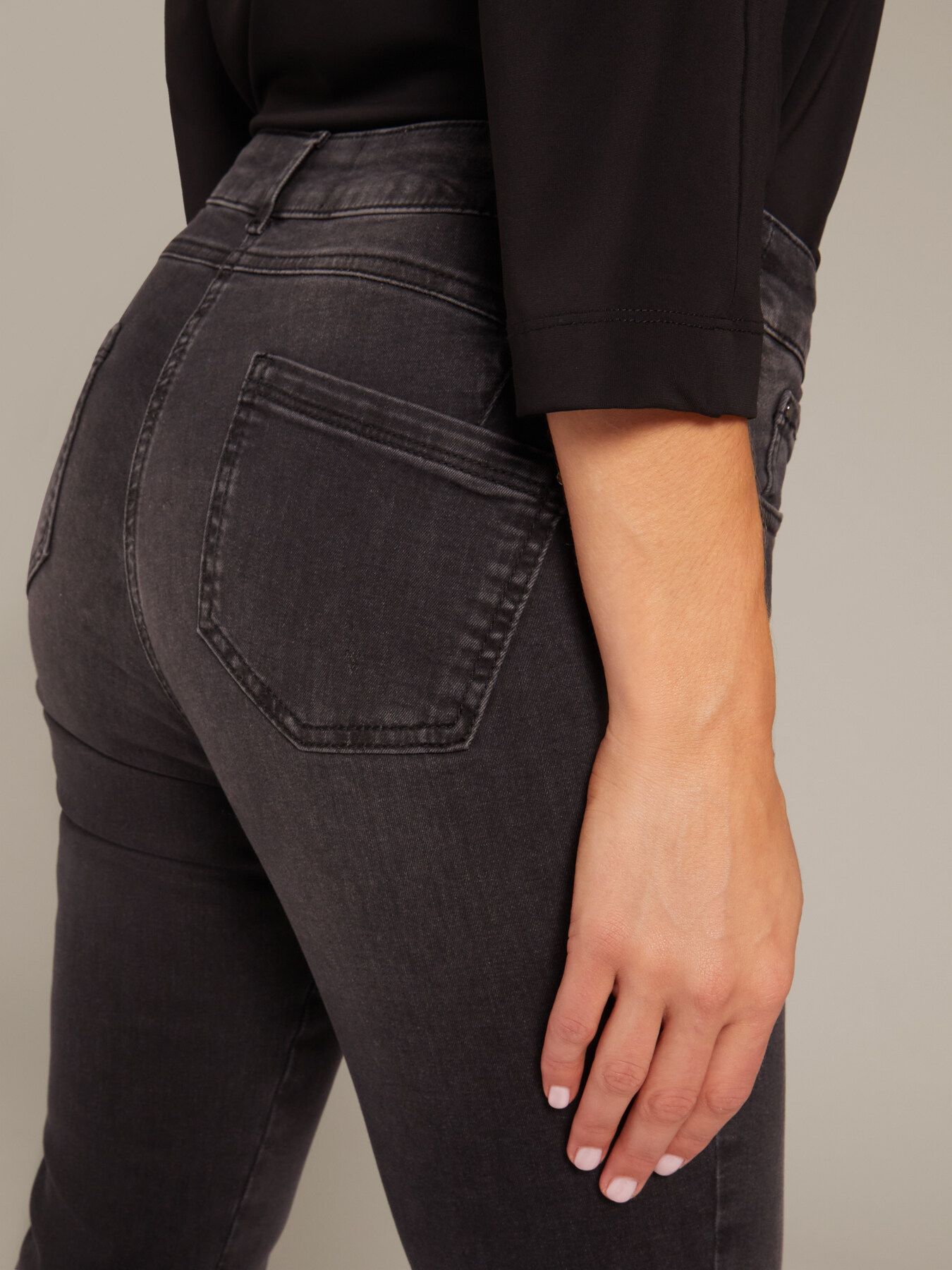Стильные джинсы из эластичного хлопка зауженного силуэта. Идеальная посадка благодаря эластичной ткани и кокетки пуш-ап. Застегивается на потайную молнию и пуговицу.