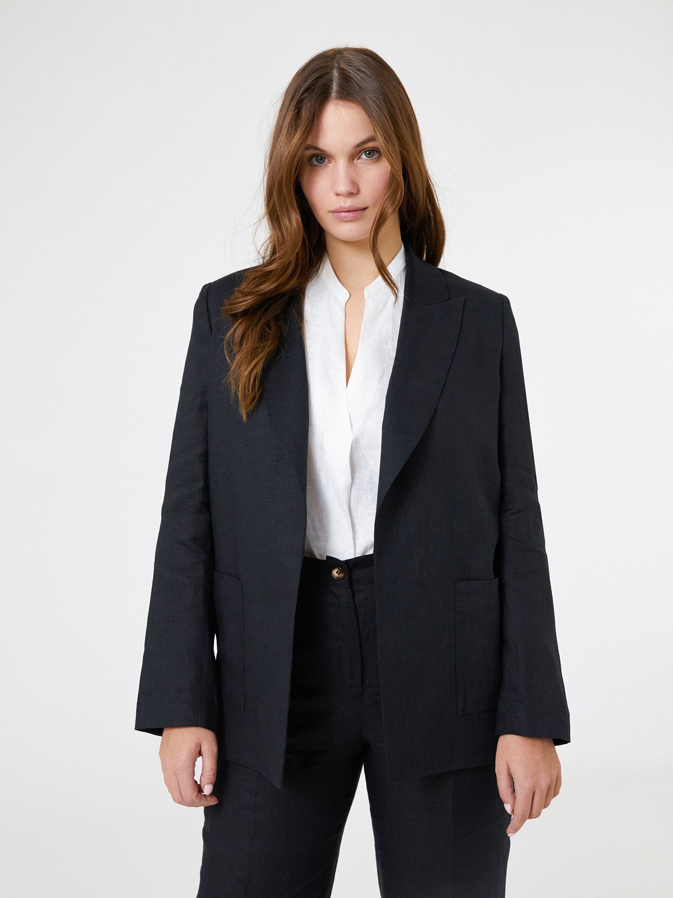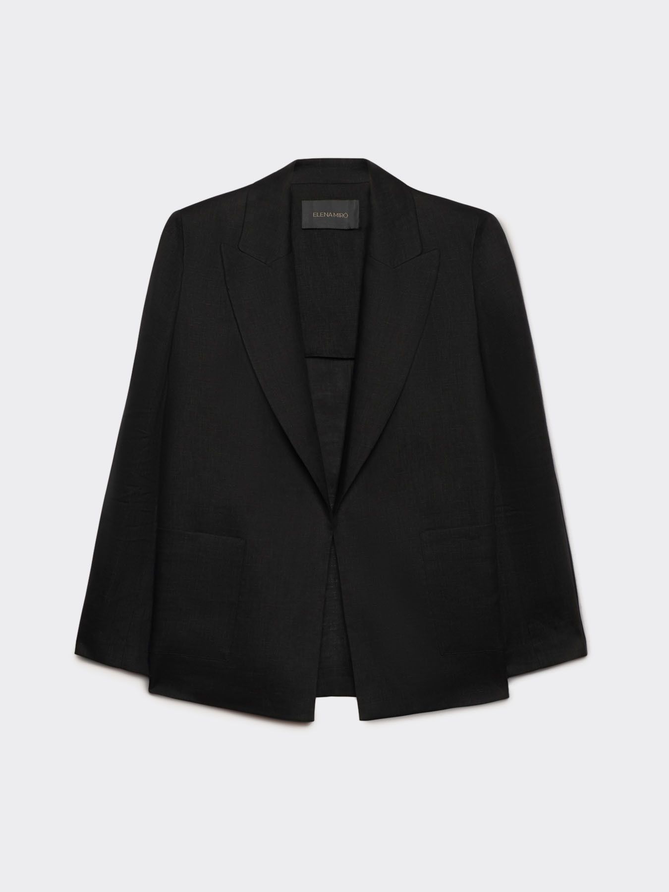 Элегантный классический однобортный жакет из 100% льна. Английский воротник, накладные карманы.